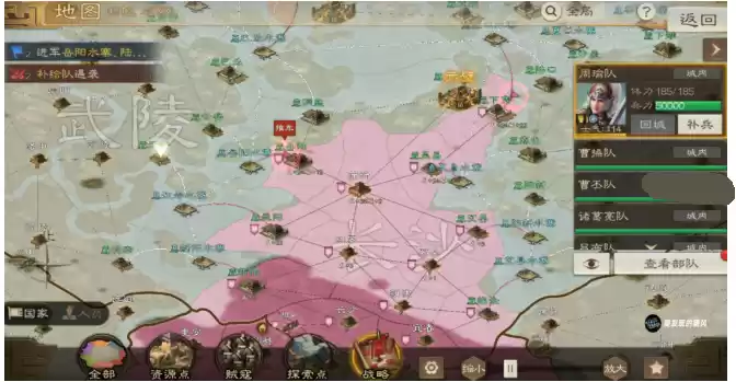 1、首先是资源州的地图上面,绿色的是码头城,蓝色的是水寨,白色的是普通城池。