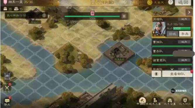 6、现在基本所有城池都有水(包括出生州),昨天测试的时候攻城地图也是水战地图(包括打驻军所),武将默认就是在水上,因此提前设置好水上兵种很重要。