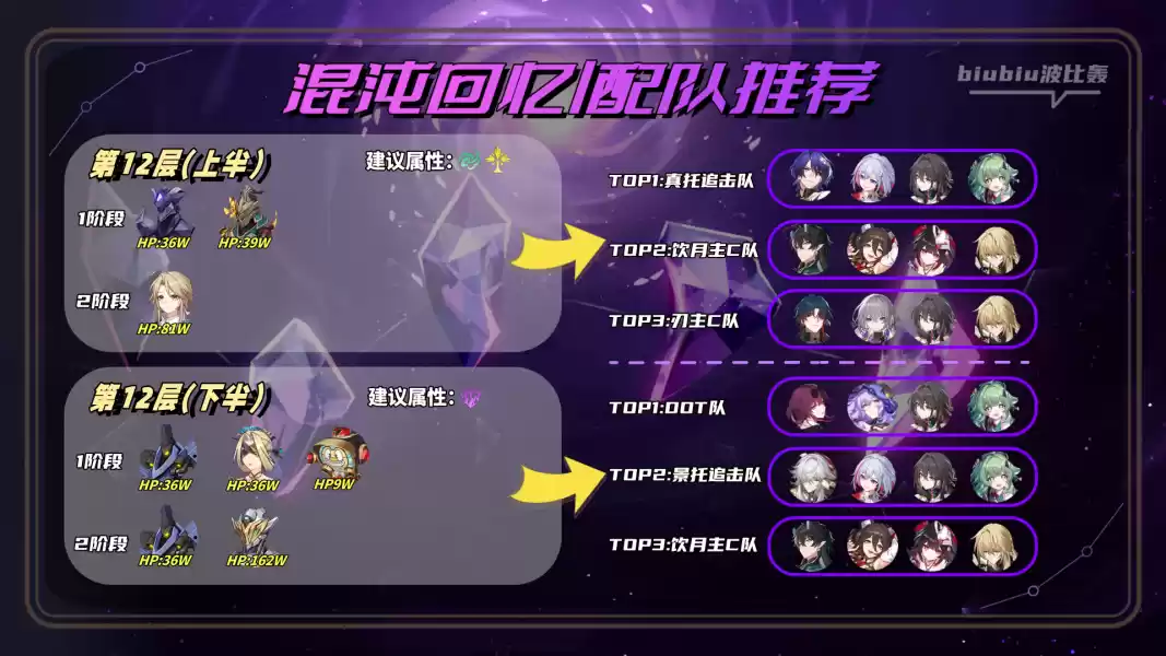 12层的上半很简单,三种敌对物种都是之前版本多次遇到过的;经过本人实测:即便0+0的真理医生在携带佩拉与停云两四星角色时(再带一个生存位),练度合格大概通关轮次在4—5轮左右;(携带托帕+五星同谐角色时,通关所用轮次会被压缩到2—3轮左右);较低练度的饮停花符在停云零星魂时需要2轮左右(停云满魂会有所缩减);