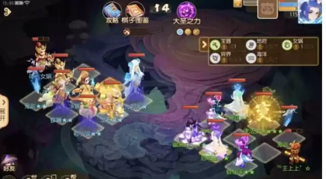 2.打法思路:大圣之力先选加能量,生存能力强的棋子放前排,优先合成防守反击棋子和输出棋子(歌小谣,龟丞相,虾兵,斑斓)