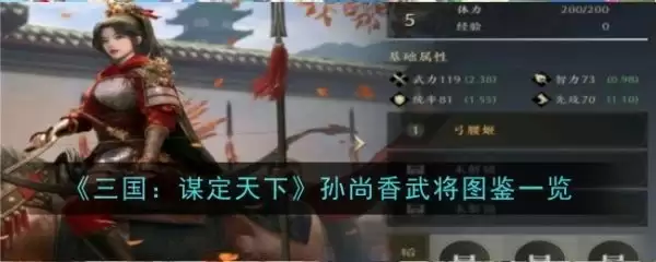 《三国:谋定天下》孙尚香武将图鉴。孙尚香是三国谋定天下非常重要的女子豪杰,那么孙尚香的自带战法是什么样的,又有什么效果呢?接下来就让我们一起了解一下三国谋定天下孙尚香武将图鉴。