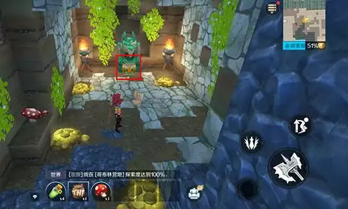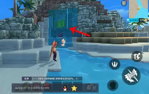 3、来到水帘洞里面,然后就发现了隐藏宝箱,攻击打开宝箱。