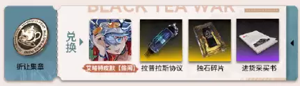 参与“红茶战争”活动的列车长可以通过红茶贸易行为获得“折让集章”,并凭借“折让集章”在商会的兑换商店中换取艾略特皮肤[偷闲] 、拉普拉斯协议、进货采买书、独石碎片等多种奖励。