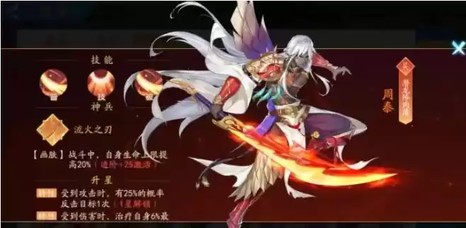 周泰原本就是橙卡中不错的肉盾,枷锁消失后“每次受伤不会超过最大生命的30%”特性让他更是成为了橙卡中最肉没有之一的肉盾第一梯队的肉盾武将。配合孙鲁班、步练师是目前最完善的肉盾回复体系,战斗中苟得住。星3星6星均提升自身续航能力,搭配步练师的治疗在对战中可以打持久战,这一点的优势在竞技场玩法中比较明显,因为竞技场的胜负结算模式是先攻方如果在十回合以内无法击杀防守方则判输,而吴国阵营当防守方往往可以苟得住。体系强才是真的强,不太需要额外的养成,担心吴国其他武将被秒可以给周泰一个不动如山锦囊。