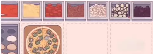 游戏可口的披萨均衡酱料的配比:面饼+酱料+芝士,左半边腊肠+猪肉粒+蘑菇+洋葱,右半边茄子+橄榄+青椒+罗勒叶。可口的披萨1.1