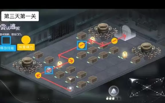 1.世界之外渡见春尝试逃脱路线走法如下: