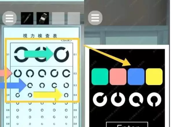 12、拾取【四色箭头】,对视力检查表使用,观察各色箭头所对应的方向。