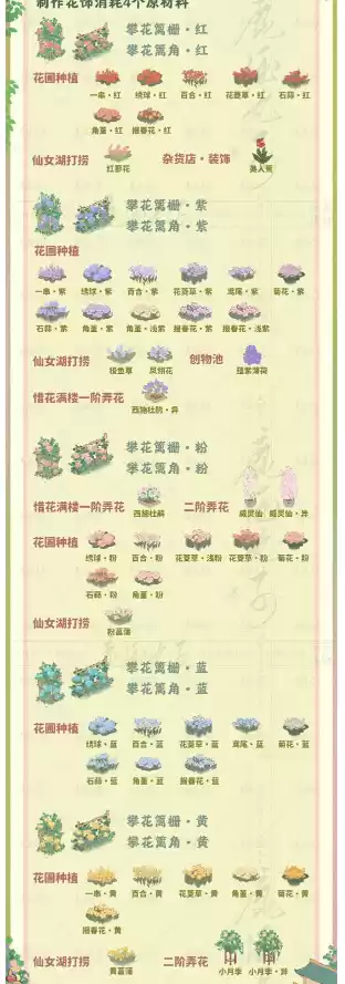1.桃源深处有人家惜花满楼获得1阶惜花满楼后,可解锁弄花,可制作西施杜鹃。
