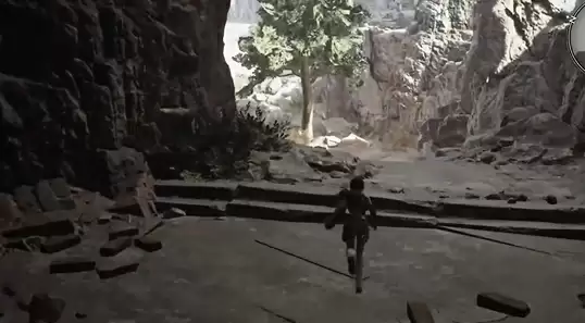 2、在这个位置一直向前跑,就是在悬崖的边上会有宝箱。