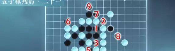 1.逆水寒手游五子棋残局二十一步骤如下,大家按照数字顺序去下棋就可以了。