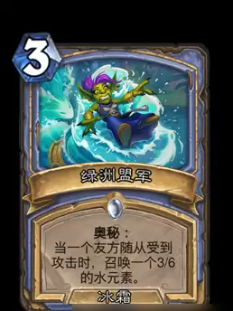 奥秘:当一个友方随从受到攻击时,召唤一个3/6的水元素。