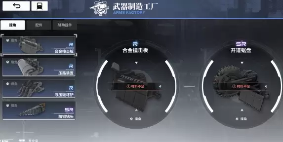 功能评价:制造一些R和SR稀有度的【列车装备】,不同【撞角】类列车装备可应对的敌人类型也不同,按自身需求查看制造即可。制造装备会消耗不少的【赴命奖章】/【铁盟币】/【各种材料】,前期勿碰。