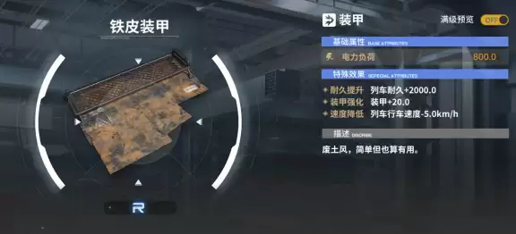 功能评价:三种装备稀有度不算高,开局资金紧张不用造,中期后期可能又有更好的列车装备。想收集列车装备的列车长可以试着制作,不然还是建议非必要不浪费。