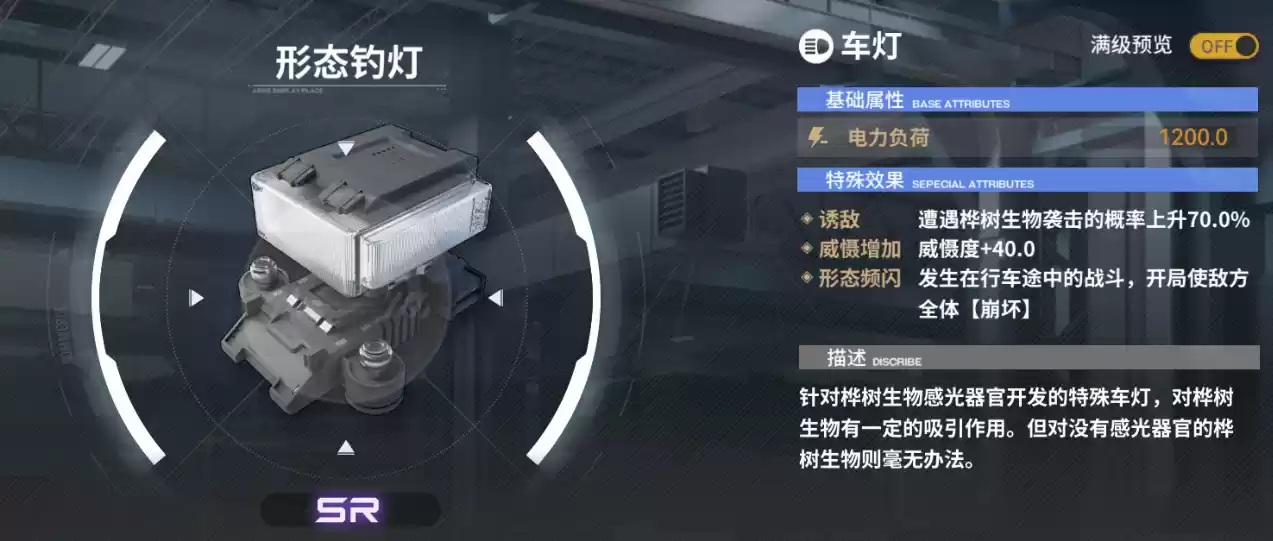 【远光大灯】减少沿途遇怪率,【爆炸火花塞】提高急行弹丸效果,【外放喇叭】提高沿途遇怪率。