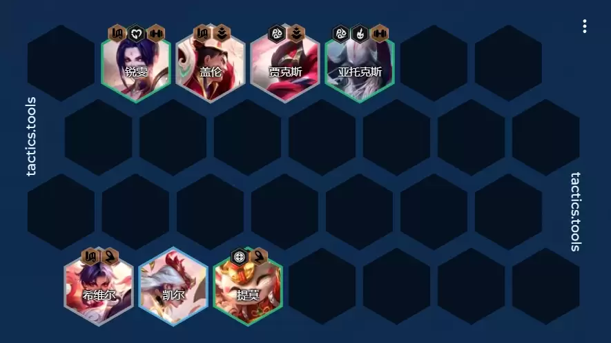 6人口,一般6人口如果质量差可以小D下质量,有赛娜也可以直接上,这样搭配组合开3墨之影羁绊,拿到一个墨纹装备过渡会更加舒服。
