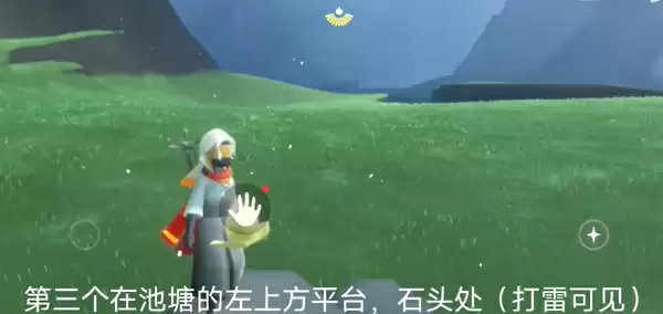 3、第三个在池塘的左上方平台,石头处(打雷可见)