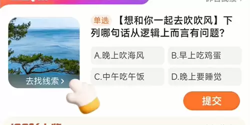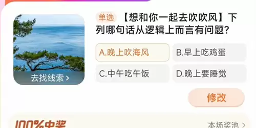 淘宝每日一猜4月10日的答案是什么?今日的问题是询问大家什么话里面从逻辑上而言有问题,相信不少的小伙伴也是非常好奇的,这个看着选项好像都是正确的,但是里面有一个是错误的不知道的小伙伴可以和小编yi'q'la
