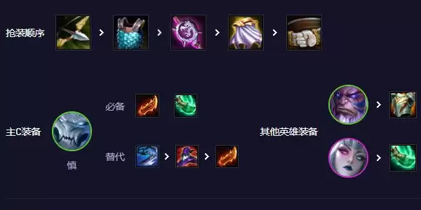 慎:羊刀龙刀必备,最后一件可以双羊刀或者帽子或者巨杀。双羊刀则是打持久战力,帽子巨杀快速过前排极致伤害。