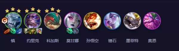 阵容:慎、大虫子、锤石、石头人、掘墓、奥恩、莫甘娜、猴子。