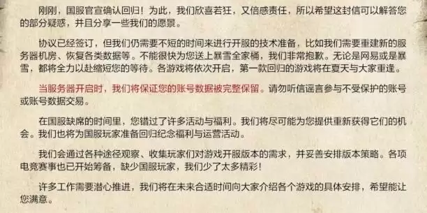 1、根据最新通告当中所写,玩家账号数据被完整保留。