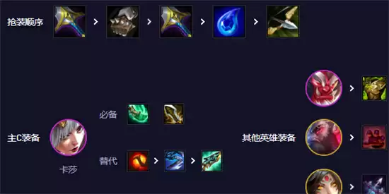 卡莎无尽无争议必做,第二件青龙刀就能快速打出第二段大,只有减员,己方前排才能存活下来,形成以多打少局面,红和穿甲都是好装备,但你可以让其他迅射带穿甲,以及提莫带鬼书来平替,这样卡莎就有更多格子去补输出装;