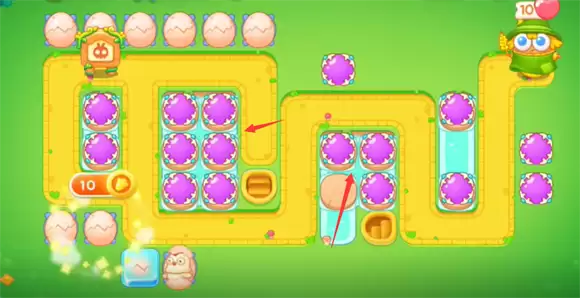 2、左上方继续建造一排鸡蛋,右下方建造魔法球;