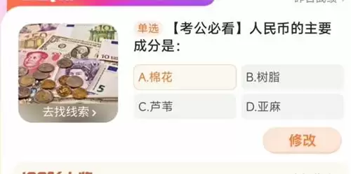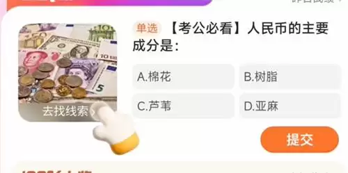 淘宝每日一猜4月17日的问题是人名币的主要成分是什么呢?相信不少的小伙伴也是非常好奇的,因为这个很多的用户可能好奇过这个人民币的主要成分,下面感兴趣的小伙伴可以和小编一起来看看吧!