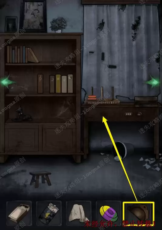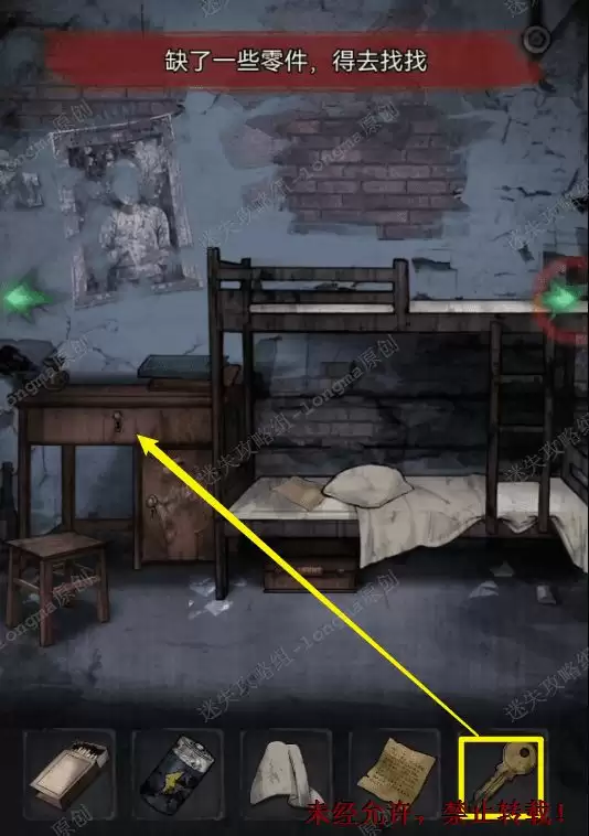 46.向右来到上下铺处,使用【老旧的钥匙】打开左边桌子的柜门,得到【生肖•马】。46