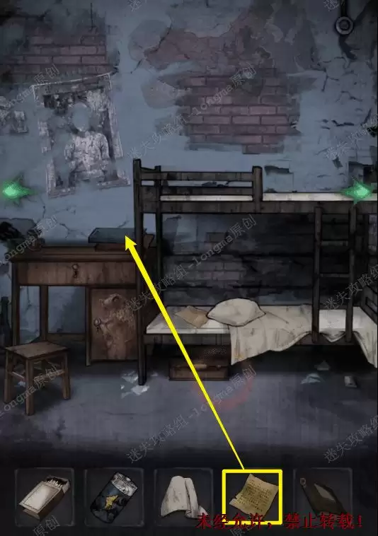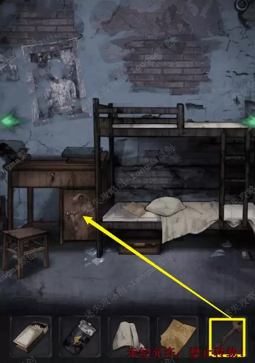 41.来到上下铺处,使用【圆头钥匙】打来左边桌子上面的抽屉,得到书籍【献祭仪式2】。41
