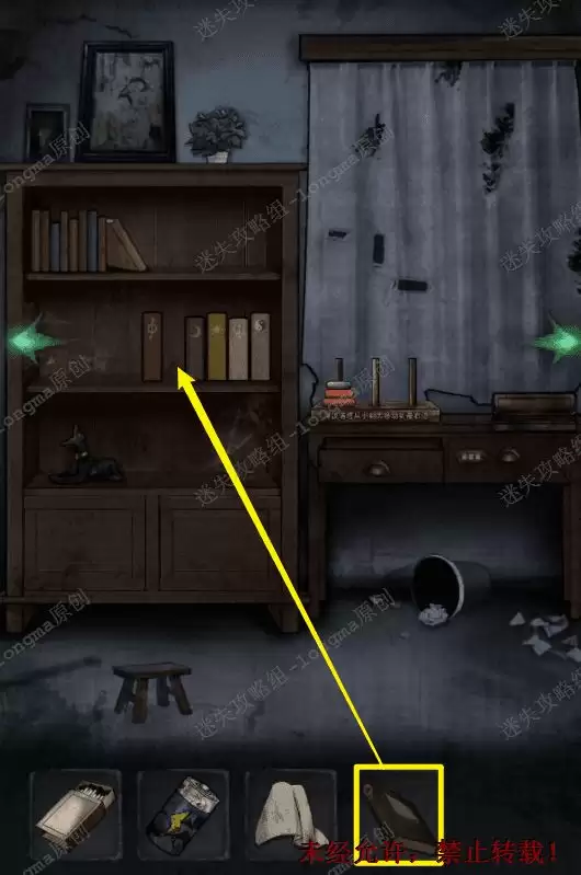 43.回到书架场景,将【献祭仪式2】放回书架,根据枕头下的线索图案摆放书籍(如图43.1),点击后面出现的线索纸,得到数字:791。43 43.1