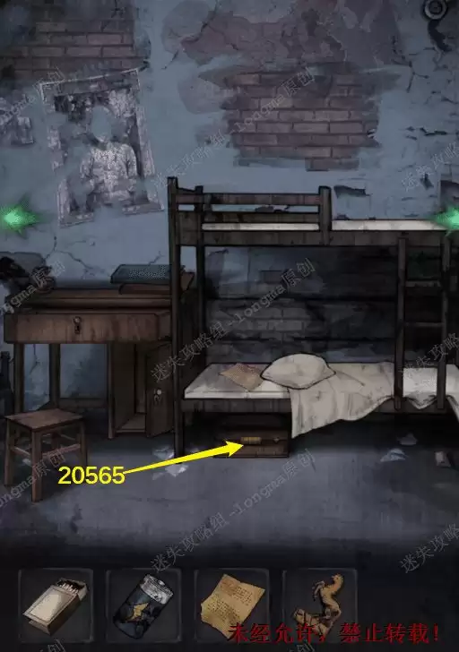 48.来到上下铺场景,点击上下铺下面的箱子,输入20565,打开箱子得到【生肖•鸡】。48