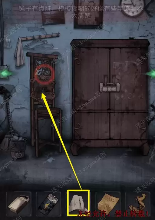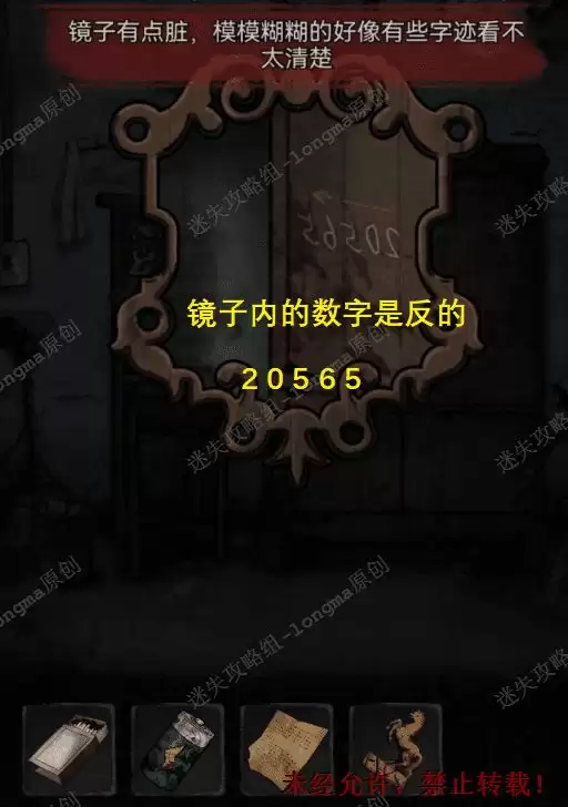 47.来哦衣柜处,使用【抹布】搽干净洗脸盆上的镜子,得到密码:20565(镜子内的数字是反的)。47