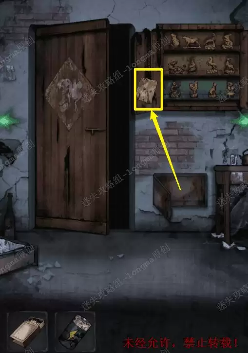 50.来到门口,使用【金属块】打开墙上下面的小柜门,得到【生肖•狗】。50