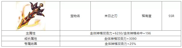 《第七幻域》末日之刃宝物属性介绍