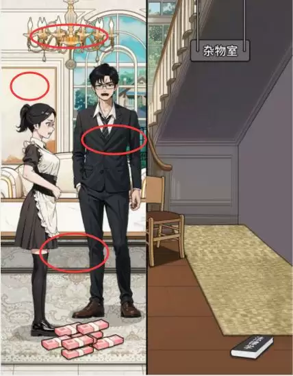 4、最后2张钱拖动到杂物间和椅子