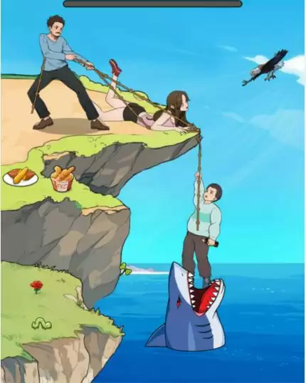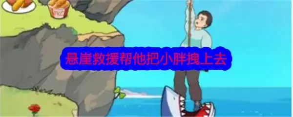 1、悬崖救援帮他把小胖拽上去这一关中可以先拖动小胖外套到绳子