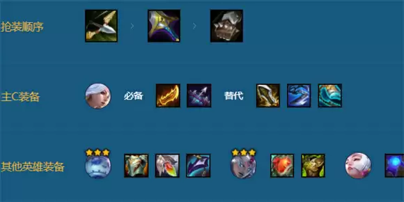 2、过渡到4阶段升7人口,免费刷到寒冰可以开4护卫过度,没免费刷到寒冰装备可以先给拉克丝/塞纳过度。