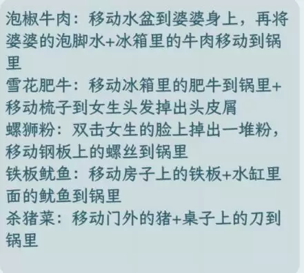 6、泡椒牛肉:移动水盆到婆婆身上,再将婆婆的泡脚水+冰箱里的牛肉移动到锅里