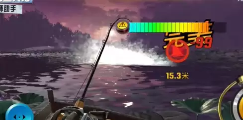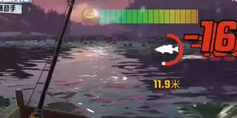3、钓大型鱼的关键是巨物BUFF,触发巨物BUFF的关键则是奇珍鱼,当游戏提醒出现有奇珍鱼的时候不要直接吊起来,可以通过摆动,慢慢收紧放松鱼线,让珍稀鱼在最远距离拉爆鱼竿,这时候会提醒升级鱼竿我们再且施加巨物BUFF。