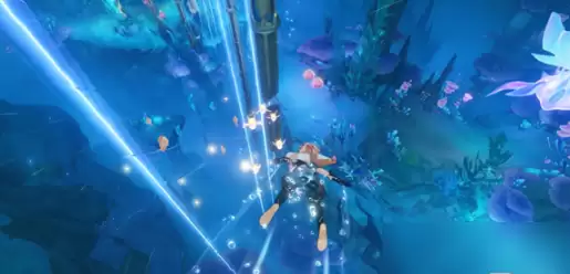 3、接着在水道周围进行游动,同时根据指示完成乐章的演奏。