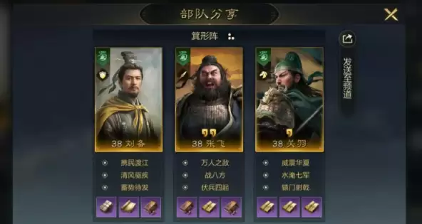介绍:刘关张经典搭配,打地一哥。特点在于持续作战能力稳定,没有明显短板,面对多种队伍都有一战之力。在回合数久的情况下,凭借控制与反控制,叠伤害来实现获胜,稳定的特性,很克制杂牌军。