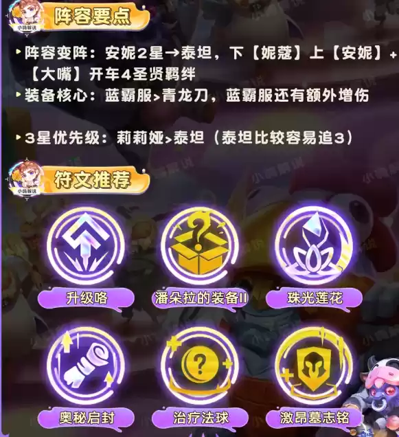 (3)圣贤莉莉娅:有圣贤转职可以考虑,阵容成型难度低于其他两套阵容,而且对装备优先不高,特别是泰坦比较容易追3星