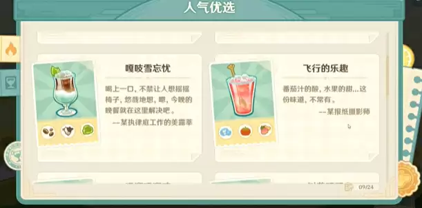 2、灵感值可以用于尝试根据顾客的需求,制作不同配方的饮品。累计获取顾客的好评,可领取原石等奖励。