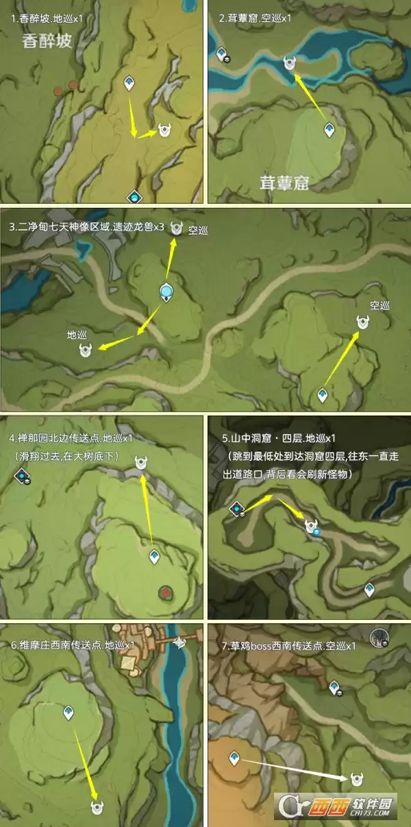 重要提示:黄色路线为高效率刷取路线、推荐去;