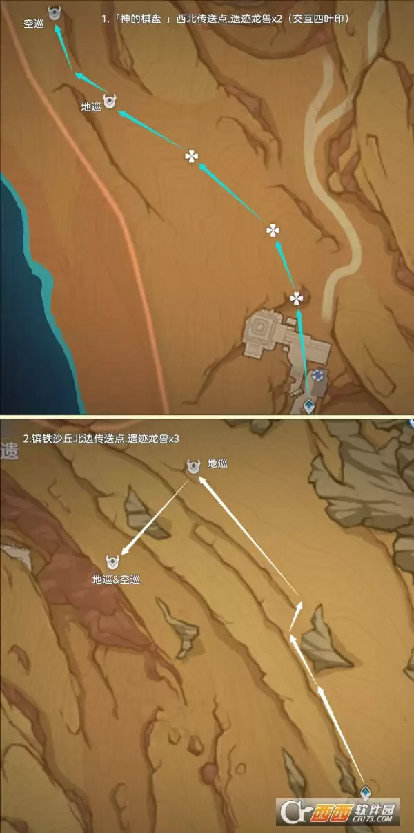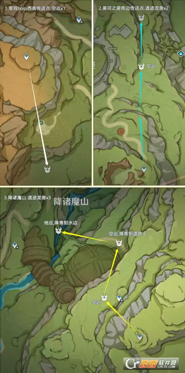 遗迹龙兽目前仅分布在须弥和枫丹区域,总共有49只,建议选黄色路线加上若干蓝色路线,该怪物数量偏少,实在缺少的话建议联机刷取
