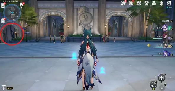 1、来到克劳克影视乐园,影视大门锚点,前走到钟表小子雕像前,可以看到前方有四个门洞。进入左边第一个门洞。