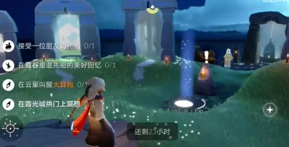 光遇5月6日的每日任务有哪些呢?首先就是接受一位朋友的礼物,随便找到自己的小伙伴互心就可以了,然后在霞谷重温先祖的美好回忆,在到霞光城的拱门上面冥想,最后找到大耳狗就可以完成今日的任务了。