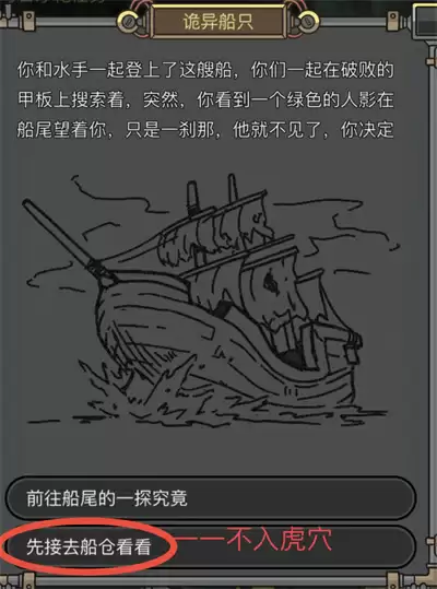 遇到幽灵船后会出现前往船仓或者船尾去查探或者没有查探
