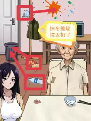 2、接着就需要抹布擦墙,把地上的垃圾扔了。