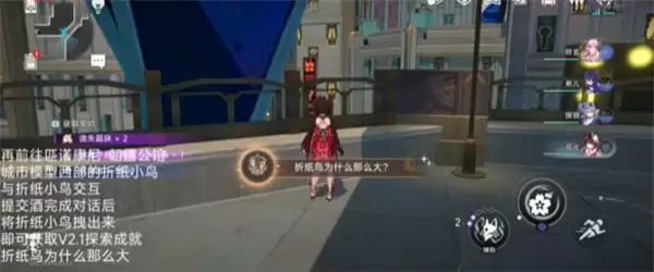 4、与折纸小鸟交互,提交酒完成对话后将折纸小鸟拽出来即可获取V2.1探索成就-折纸鸟为什么那么大。
